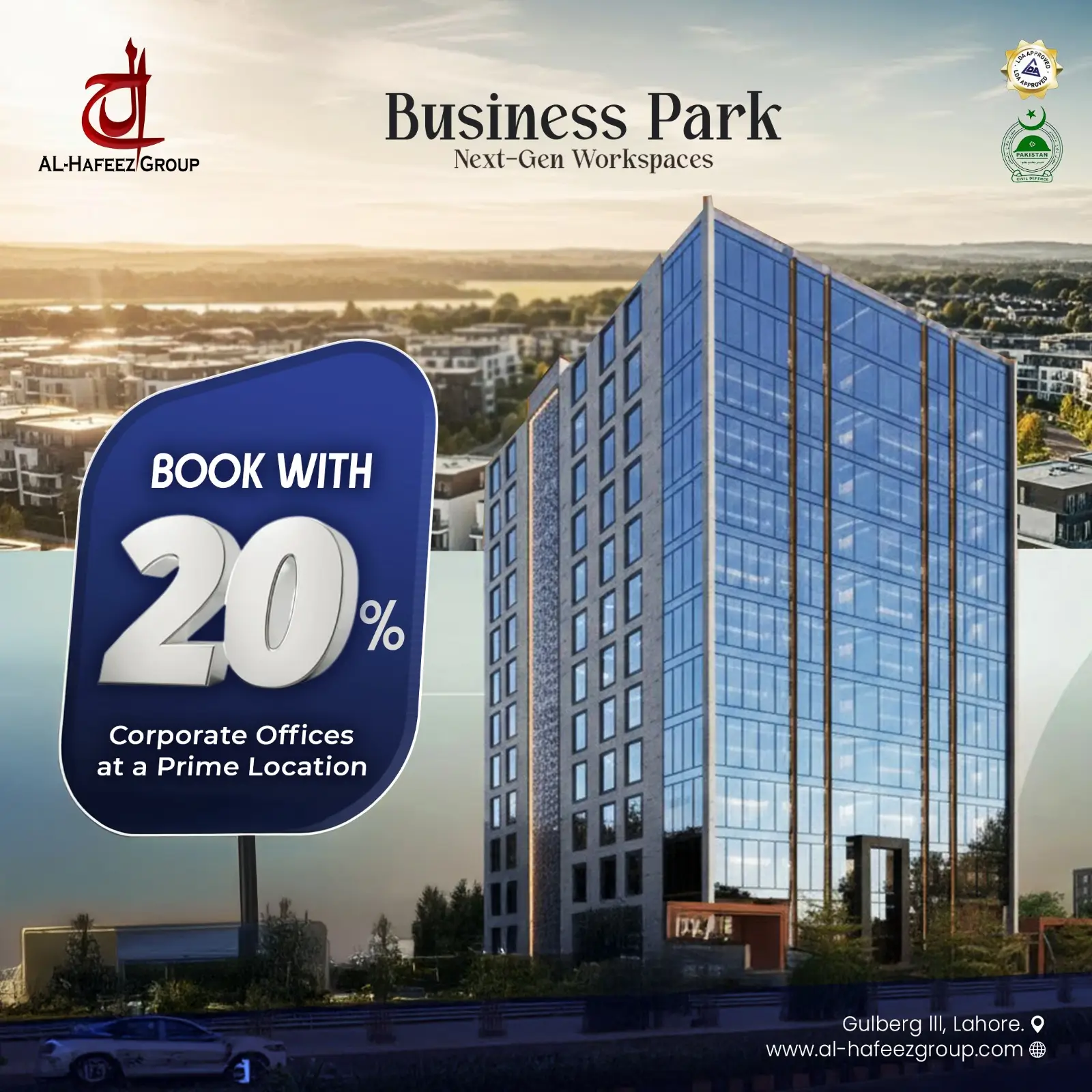 Yes, you can absolutely buy an office in the Al Hafeez Group. We are one of the most prolific builders of corporate spaces in Lahore, particularly in the Gulberg III area.